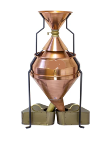 Homogenizador, fabricado en cobre para evitar el óxido y dar un acabado suave y sin soldadura. Las patas y los soportes están en acero inoxidable.