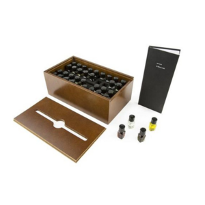 36 aromas de virtudes y defectos del café, una edición al alcance de todos. Caja de madera, libro explicativo.